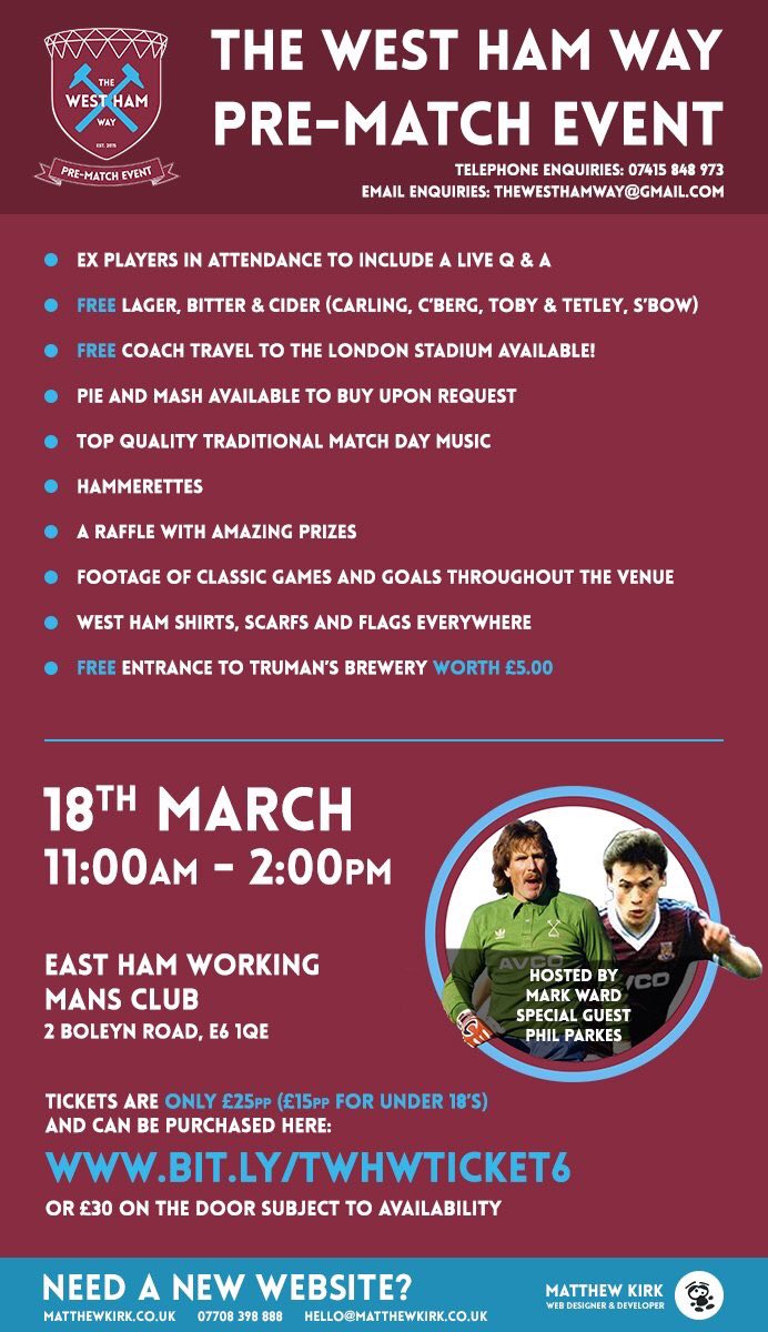 The West Ham family feel and atmosphere is something that is no replicated in soulless Stratford. If you have not attended an event before we think you will be pleasantly surprised and keep coming back. Give it a try!! If you do not believe us just look at this spontaneous bubbles that erupted at our last event. https://twitter.com/ExWHUemployee/status/831243898865459201